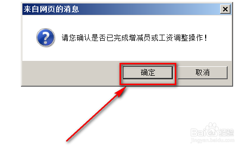 7、点击【社保保险费申报】后,页面会弹出人员增减或工资调整操作的提示,点击【确定】,如果还未调整,需先进行人员增减或工资调整;