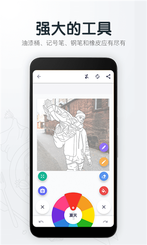 3、25+多彩调色板:多种颜色随意搭配,给图片填上缤纷色彩。