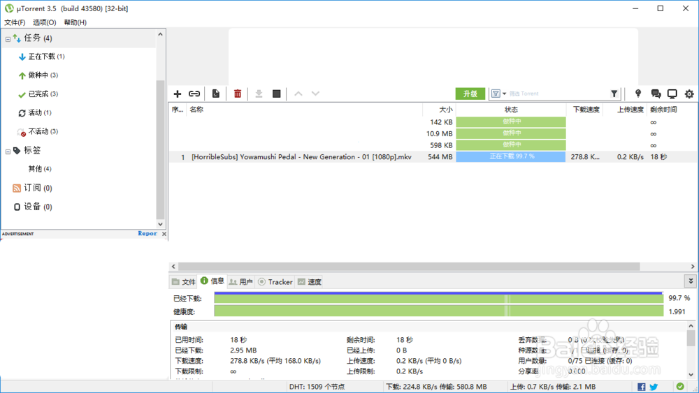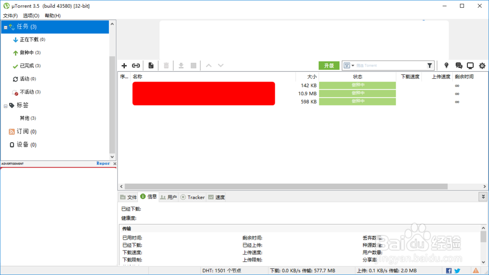 打开utorrent,在桌面找到该种子文件,拉进软件任务区域。
