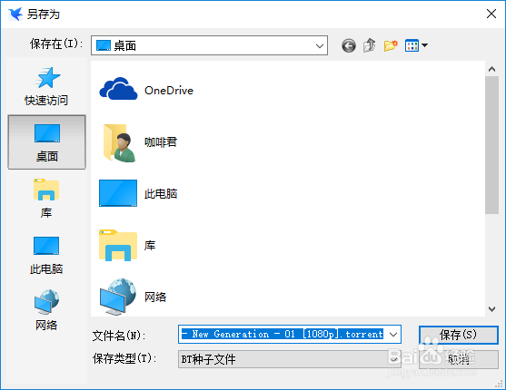 接下来我们需要得到该任务的种子,同样右键任务,选择种子文件另存为,这里选择保存到桌面。