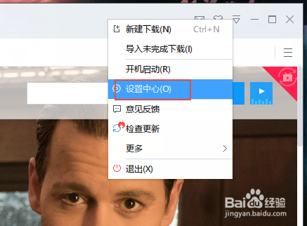 我们都不知道其实迅雷下载速度也这么快也是有原因的,咱们点击位于右上角的小三角形,找到咱们的设置中心,如图所示!