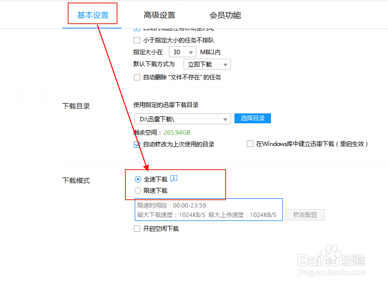 找到其中的基本设置,接着再打开其中的下载模式中的全速模式,有很多时候我们都是没有开启这个全速下载的模式才导致我们的下载速度变卡的!