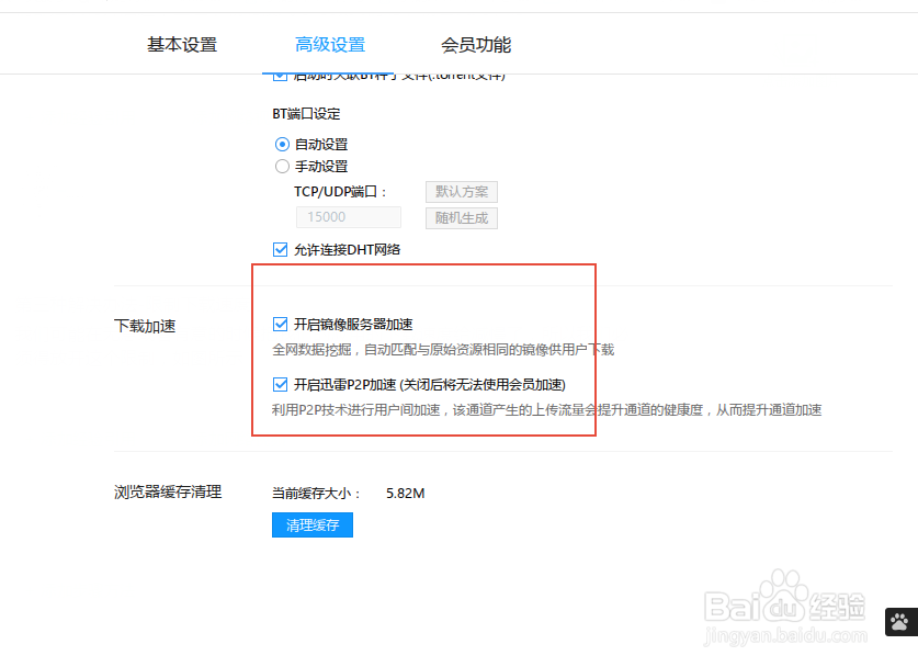 我们可能在无意或者有意的时候把我们的应用的下载速度给减慢了,所以我们必须得放开这个限制,如图所示,开启高级设置中的下载加速模式,开启p2p下载加速。