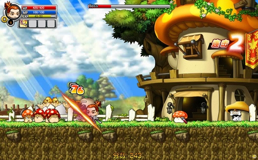 BOSS巨大树精拥有很强的自我再生能力,因此在关卡前段要尽量节省药水的消耗,以面对与巨大树精的消耗战。