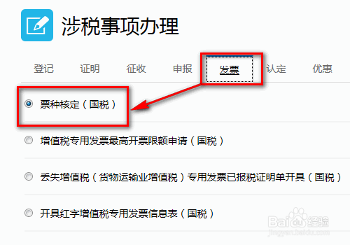 点击【事项办理】,页面弹跳后,点击【发票】项下的【票种核定】,再点击最下方的【办理】。