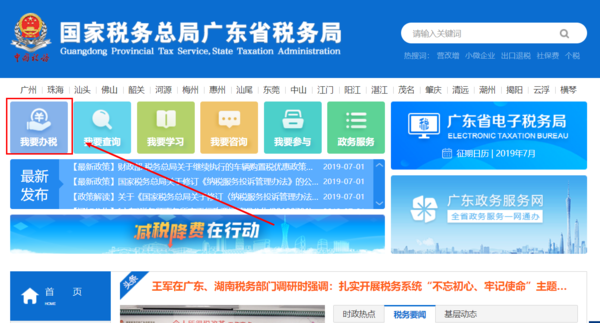 1、进入国家税务总局广东省税务局,点击“我要办税”。