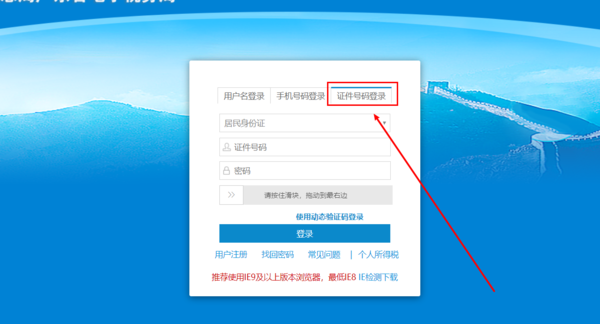 5、如果记得证件号,也可以使用证件号登陆。