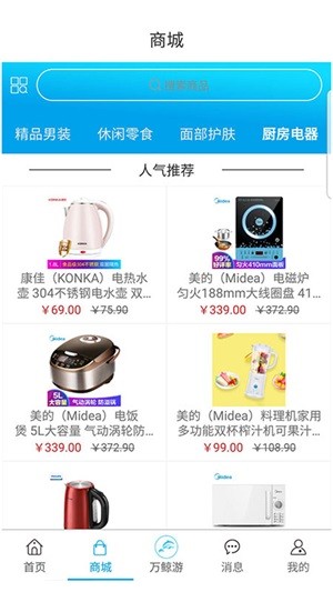 万鲸游app是致力于为蓝领、初级白领用户提供【线上商城购物】服务,满足其生活消费的软件。万鲸游app具有商品搜索、浏览、购买、支付、收藏等诸多在线功能,旨在为用户提供低价优质的商品,体会更多的实惠。【功能介绍】