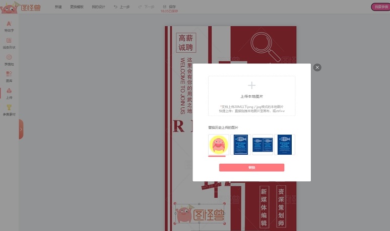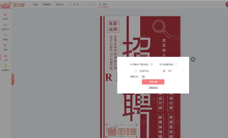 2、图怪兽网站支持模板作品下载,以及模板作品保存功能,作品存储在云端,安全方便。