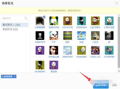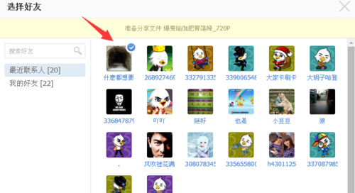 然后在好友列表里面,点击一下接收人的名字勾选起来。
