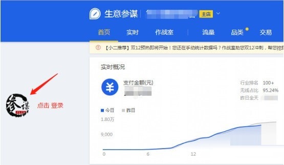 1、起点软件园下载安装插件之后,打开淘宝生意参谋网站,然后登录2、此时生意参谋网站左侧,会有一个参谋plus的图标,点击弹出登录框