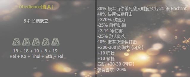 2.每个符文之语都指定了几个符文的组合,底材的孔数要与符文之语的要求一致,比如符文之语如果是5#+6#的组合,就只能用2凹槽的物品做符文之语,如果用3凹槽或者4凹槽的装备来做,是做不出的。