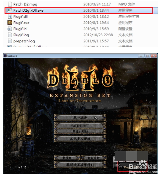 一般网上下载下来大箱子补丁,都会有一个压缩包plugy,安装方法一般是把压缩包里面的文件复制到暗黑2的安装目录下,点击一个叫“PatchD2gfxDLL”(如第一张图)的文件,会弹出一个黑色命令提示框,并有英文对话框问你是否安装,点确定,不到一秒钟就能安装好,会有对话框,点确定就完成安装。判断安装成功的方法是看暗黑2启动以后右下角有无“plugy”字样(见第二幅图)。