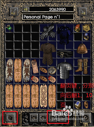 注意,两种物品箱都是无限大,可无限翻页(红框框出翻页按钮)。