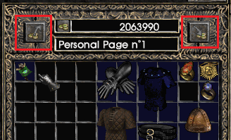 钱可以无限存。你可以像之前,没有大箱子补丁一样存钱,那是你的私人钱,有上限(随等级增加)。但是也可以通过如下图红色框中的按钮存入共享的金钱,左边为存入,右边为取出(可惜不能看里面还剩多少钱,也无法调数量,也就是一点左边按钮你身上的钱就全部存入,一点右边的钱就全部取出,当然身上拿钱的数额也有上限,最多取出你身上能拿的最大钱数),通过这个存进去的钱各人物共有。