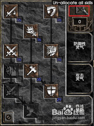 ②洗技能点:只要点击技能树(按T开启)右上角的小八叉,技能点就全部洗下来,可以重新加。(见第二幅图)