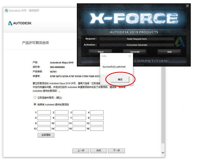 8、会弹出一个窗口,提示"Successfully patched",点击【确定】。