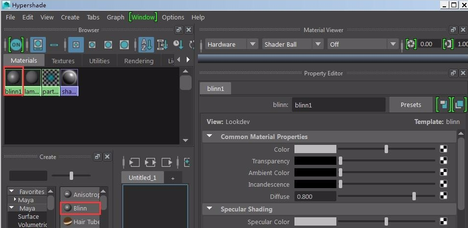 2、打开玛雅Maya破解版材质编辑器;新建一个材质球