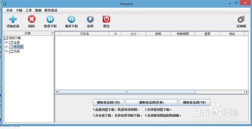 1、在网上搜“howxia”,并下载此软件,该软件是免费的,但一次只能下载一个文件,充值后可以同时下载多个任务。