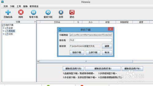4、在howxia里点“添加任务”,把复制的网址粘贴在“下载地址”栏里,点击“立即下载”。