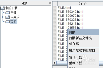 5、下载成功后,可以直接点击打开,也可以点击“我的下载”里面的“完成”,左面有自己下载的文件,右键点击即可打开。