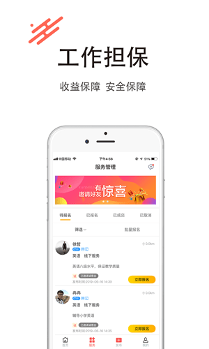3、收益保障:薪资预付,实时结算。