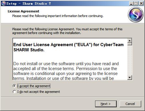 1、双击“Sharm_Studio_7-10.exe”出现协议,选择i accept