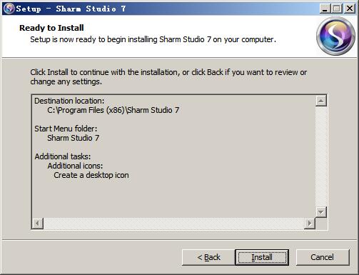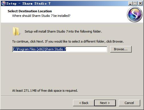 2、点击next选择软件安装目录,默认为“C:\Program Files (x86)\Sharm Studio 7”
