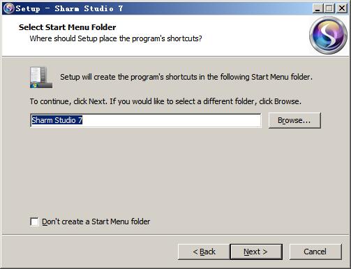 3、选择开始菜单文件夹的名称,默认为“Sharm Studio 7”