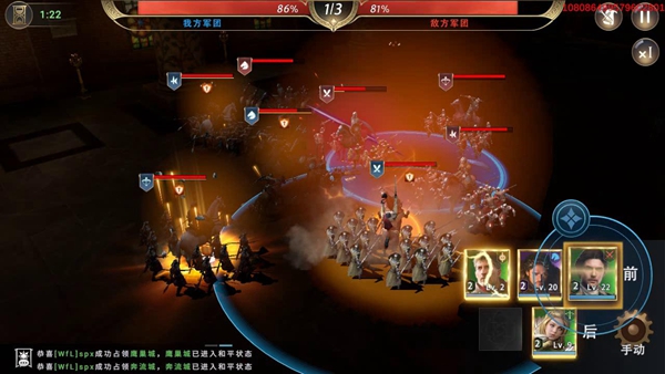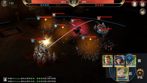 领主按住右下角的指挥官头像,可调整技能覆盖的范围,通过上下拖动,最多可让克里斯的技能同时覆盖敌方的两个前排方阵和一个弓兵方阵,并对敌方指挥官造成伤害。所以圆形技能释放时,要记得拖动按钮,使其最大可能的覆盖敌人。