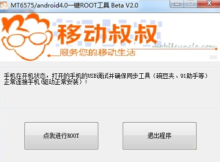 同步工具打开的情况,请不要关闭,同时打开移动叔叔一键ROOT工具。
