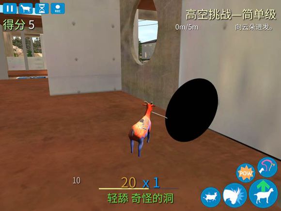普通形态:游戏中对于山羊的控制不用说了,山羊有简单的移动、加速和跳跃功能。