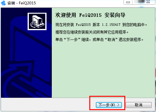 1、在本站下载飞秋2015安装包,然后解压缩。双击.exe运行程序之后就会打开如下安装向导界面,点击下一步。