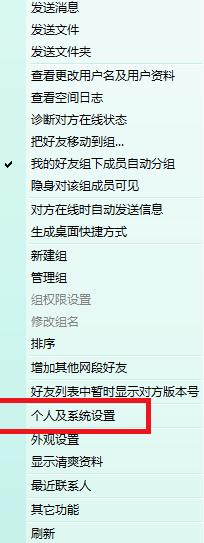 怎么导出飞秋的聊天记录?1、在飞秋的好友组里面,点击右键,选择个人及系统设置