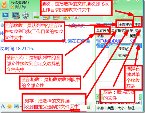 全部接收: 是把队列中的全部文件接收到飞秋工作目录的接收文件夹中。