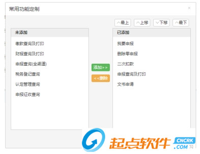 常用功能中列举出纳税人办税常用的功能链接如我要申报、申报查询及打印等,纳税人可根据自己的习惯,点击右上角的按钮,通过“添加”或“删除”实现常用功能的自定义。