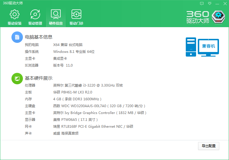 2、驱动体检。首创驱动体检技术,更快更精准地识别您的电脑,电脑信息一目了然