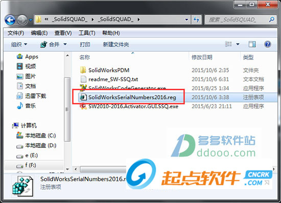 2、打开安装包,打开“_SolidSQUAD_”目录解压“_SolidSQUAD_.7z”,运行其中的“SolidWorksSerialNumbers2016.reg”写入注册表信息