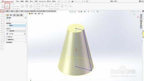 画好后,选择:特征—旋转凸台/基体。这样从图中就可以看出虚拟图形,如未体现出来,说明上一步骤未处于闭合状态。