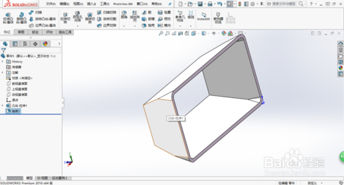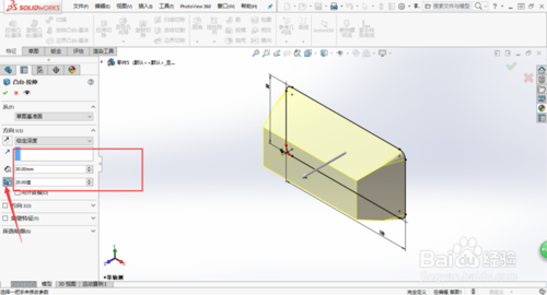 然后使用拉伸凸台特征对草图进行拉伸,如图所示