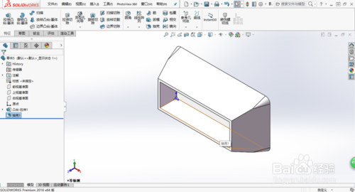 当我们同时选择多个面的时候然后再来使用抽壳命令时,几何体可能会成壁厚一致的通孔,如图所示选择两个面