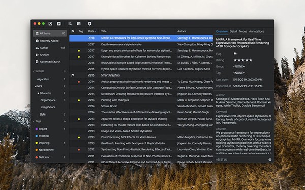SnowyOwl Mac版支持多个数据库,提供分组,标签,关键字等多种方式来帮你整理你的数据。你可以很容易的通过你喜欢的网盘来同步你的数据库。它会自动提取PDF 标注,并且可以搜索你的文档内容。可以通过内置的 MarkDown 编辑器来记笔记。