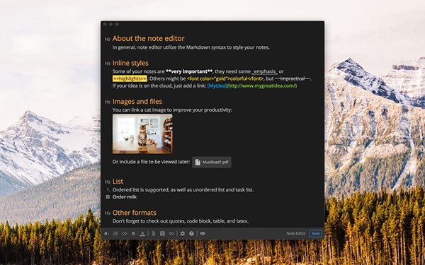 使用内置的 Markdown 编辑器来添加笔记,它还支持 LaTeX 语法。