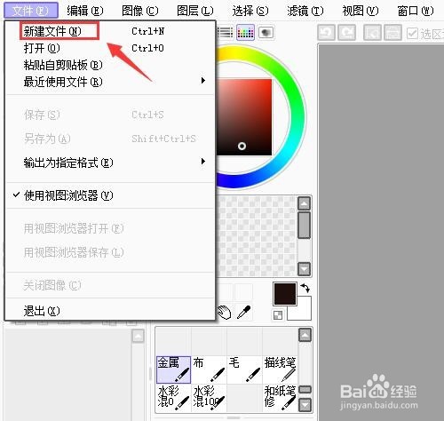 首先我们找到sai的快捷图标,双击将sai这款软件打开,然后在菜单里找到文件选项,点击该选项在其下拉菜单里找到新建选项,如图所示:
