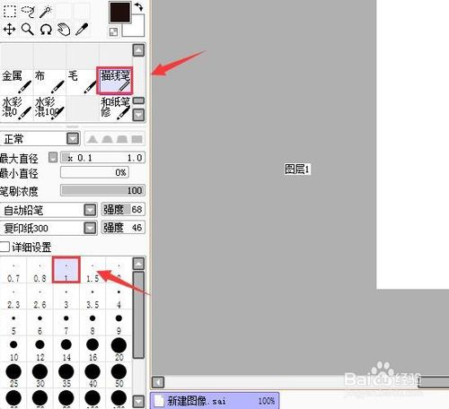 设置好之后我们在sai的工具箱内找到描线笔选项,并设置描线笔的大小,如图所示: