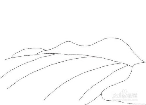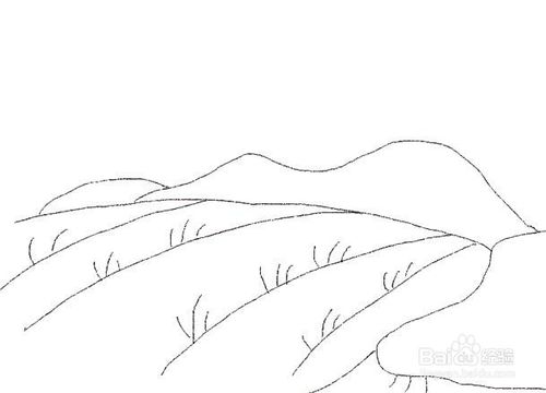 再在山脉的基础上我们在使用描线笔画出地面的线条,如图所示: