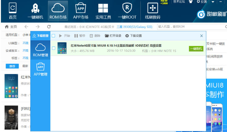 甜椒刷机助手是一款非常不错的一键刷机软件,功能强大且完全免费使用。该软件拥有超强的应用管理功能,用户可根据自身情况对手机内的应用程式进行精简删除,打造属于自己的独特定制机。还可以快速完成ROOT权限获取、解锁、数据备份还原等各种刷机相关服务,支持大量机型的一键Root、救砖功能,是一款让安卓Android刷机变得更简单、安全、快速的一键刷机工具。还具有完备的甜椒官方知识库,涵盖市面所有热门机型的刷机指导、救砖教程以及刷机常识,从入门到精通,全方位解除用户刷机恐惧。而且提供精品安全的ROM资源下载,解除ROM查找烦恼,并具备最全的刷机救砖知识库,一站式解决各种刷机困难,是目前最好、最稳定的安卓刷机软件之一,是千万安卓刷机用户的共同选择。同时支持本地资料备份和云端刷机方案高效匹配,可以快速帮助用户完成手机刷机,为你一站式解决各种刷机困难,非常的方便实用。还等什么呢?一款不可多得的一键刷机软件千万不要错过了,喜欢的朋友快来下载体验吧!