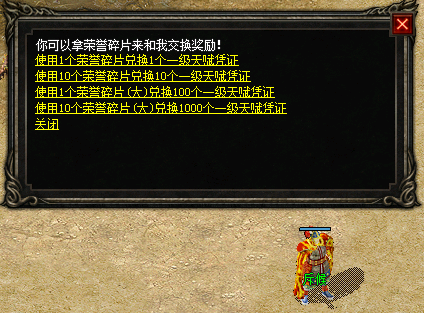 3、荣誉碎片可在地图中间的斥候NPC处兑换一级天赋凭证(绑定)。