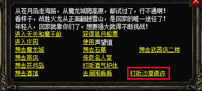2、选择“打听沙漠遗迹”,即可通过老兵传送至传送门附近。