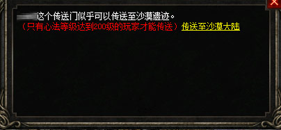 3、点击“传送门”,由于前方危机四伏,只有心法等级达到200级的玩家才能被传送,请确认你已经做好准备。